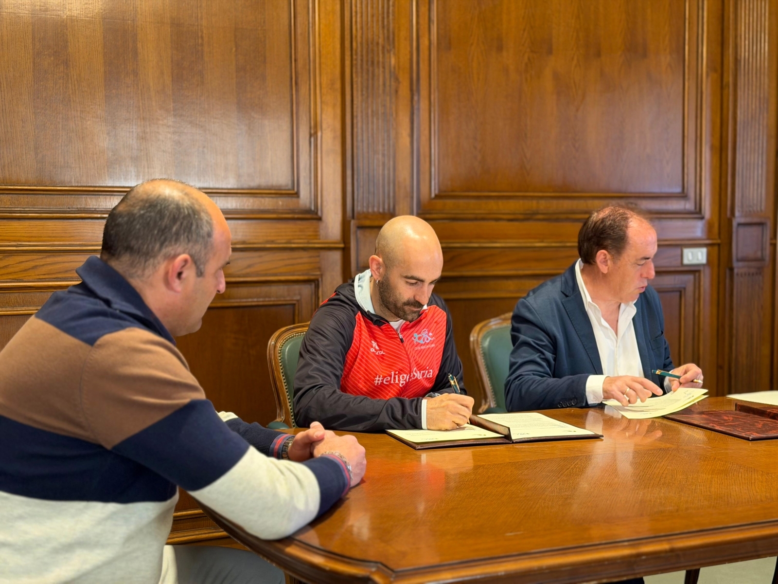 El presidente de la Diputación de Soria, Benito Serrano, ha rubricado un nuevo convenio de colaboración con el representante del Club Triatlón Soriano, Pablo Pérez, mediante el cual se formaliza una ayuda económica de 12.000 euros. En el encuentro, que ha contado también con la presencia del diputado de Deportes, Sergio Frías, se ha puesto de manifiesto la voluntad de impulsar la trayectoria del equipo en la Primera División nacional, así como en los diferentes campeonatos de España e internacionales que afronte la plantilla.
