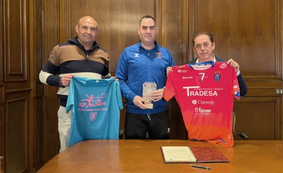 El presidente de la Diputación de Soria, Benito Serrano, ha recibido en la sede de la institución provincial al representante del Club Balonmano Ágreda, Juan Carlos Vera. El encuentro ha servido para rubricar un nuevo convenio de colaboración entre ambas entidades, dotado con una cuantía económica de 7.500 euros, que irán destinados íntegramente a la organización del Torneo Nacional de Balonmano Villa de Ágreda.
