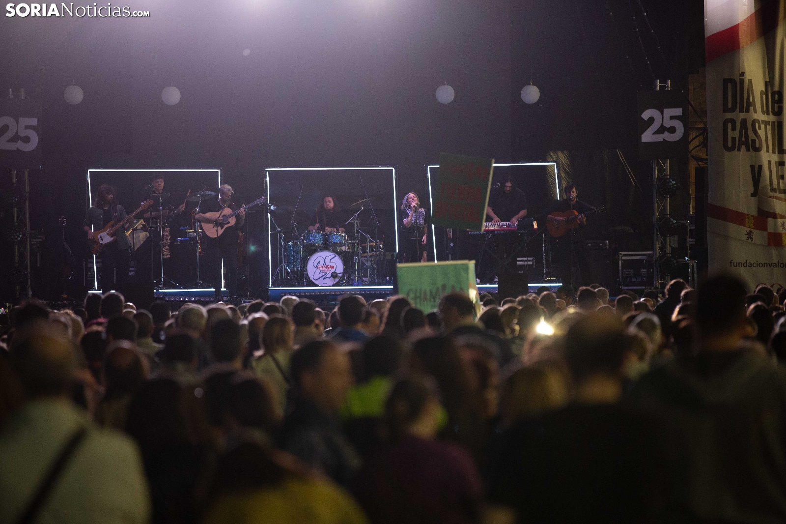 Para celebrar el Día de la Comunidad, la Junta de Castilla y León ha organizado un ciclo de actuaciones en las nueve provincias de la región, destacando este concierto de 'Chambao' en Soria. El evento, que ha contado con la participación del grupo soriano 'Los Trócolos' como teloneros, sirve de antesala a la gira internacional por el 25 aniversario de la formación liderada por La Mari, un proyecto conmemorativo que incluye un nuevo disco.