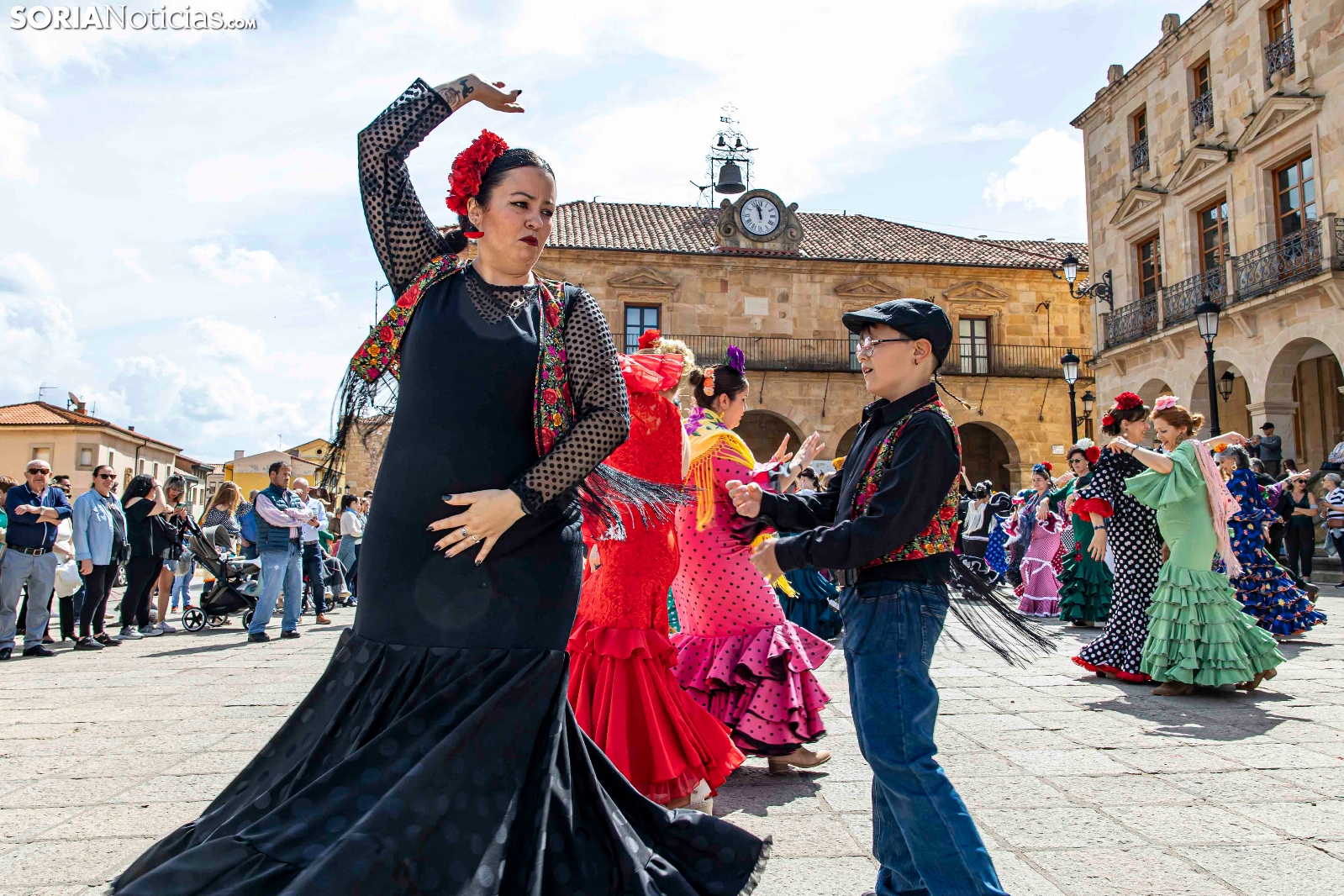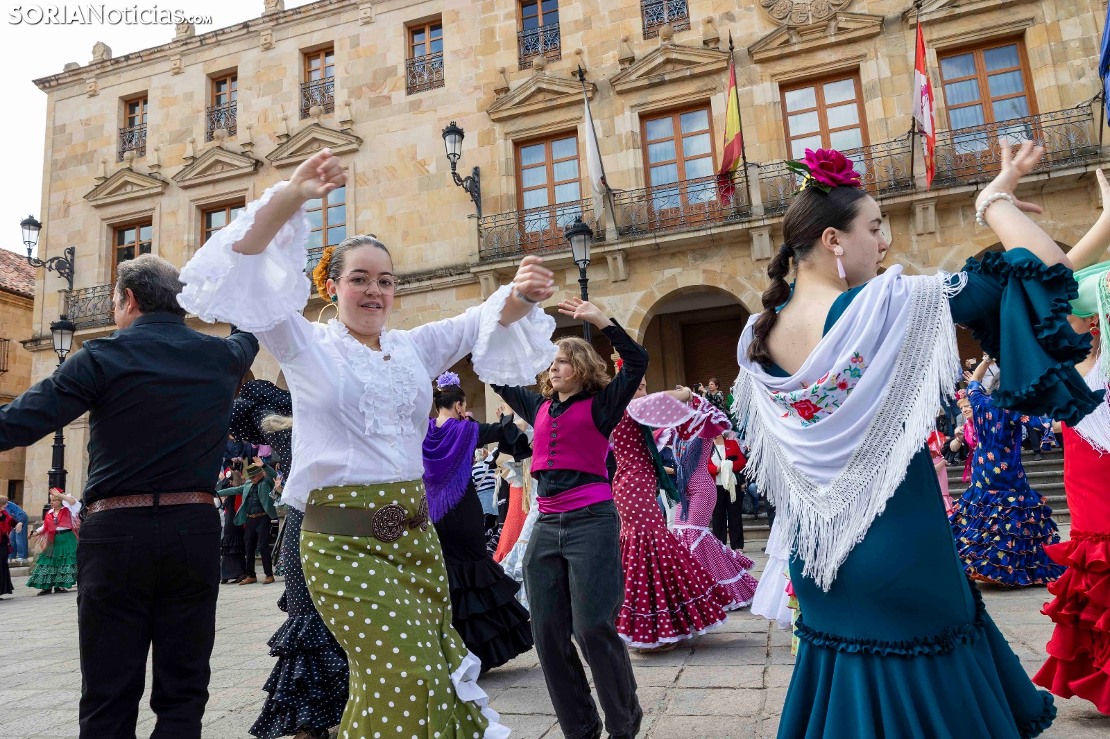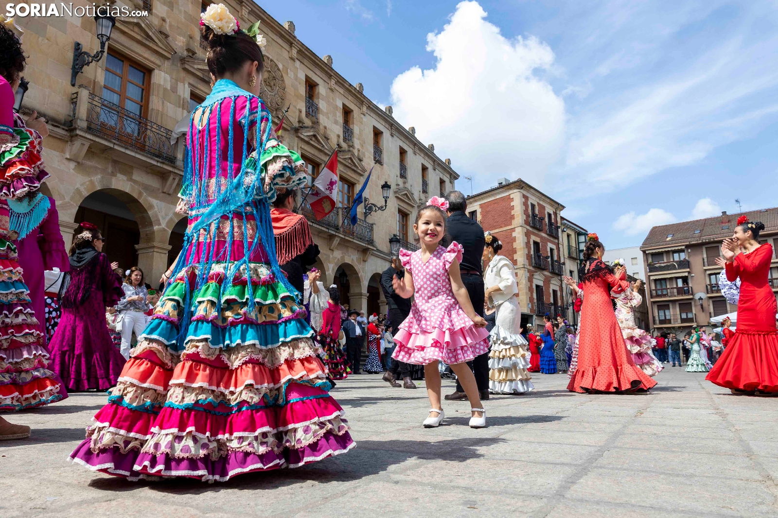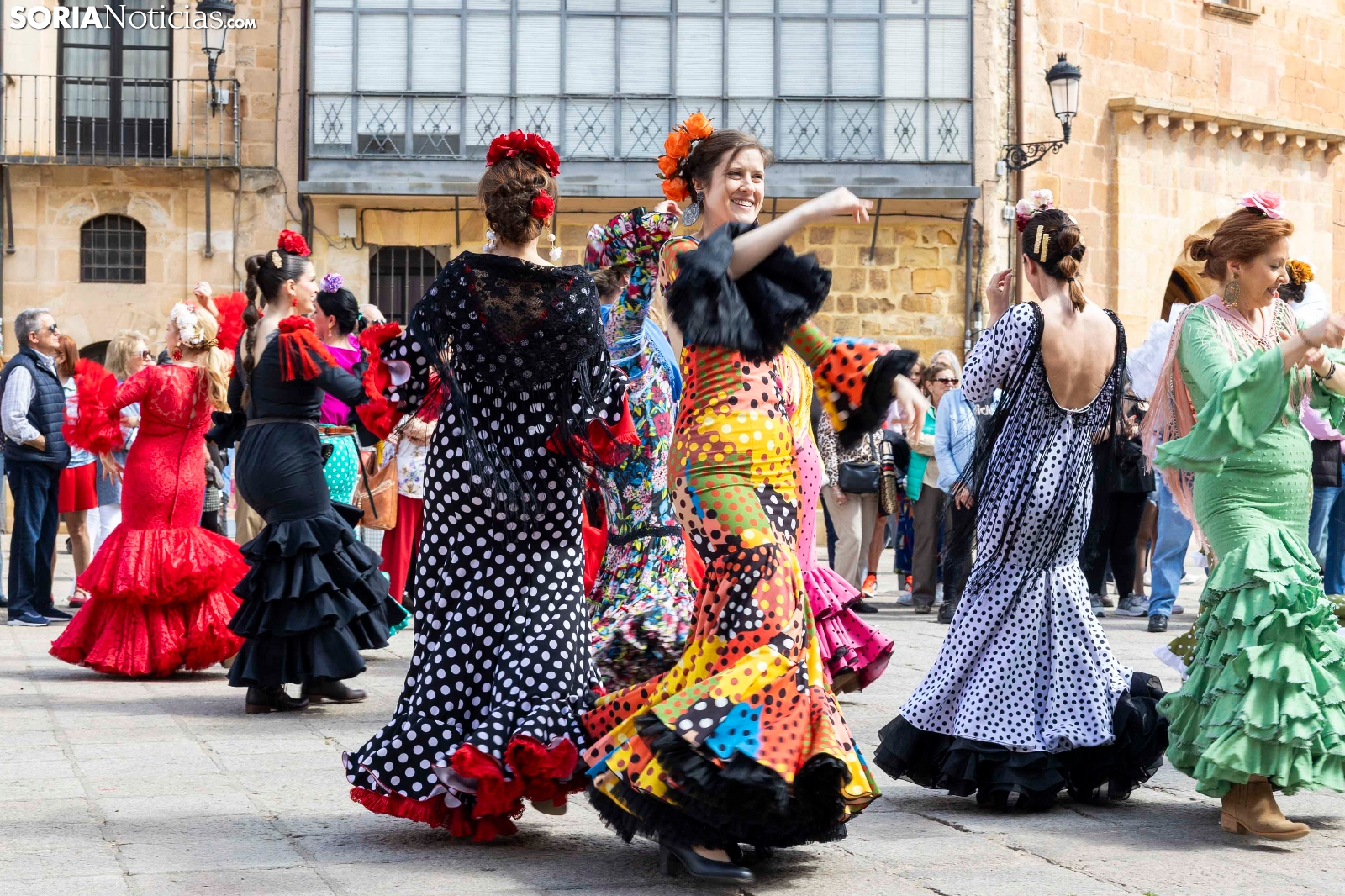 El arte del sur ha llegado a su máximo esplendor a la capital soriana con la romería de la Feria de Abril de El Calaverón. La plaza Mayor se ha llenado de baile, color y alegría gracias a las sevillanas que se han bailado con los mejores y más originales trajes de gitana. Bajo la atenta mirada de cientos de sorianos, han deslumbrado con sus giros, palmeos y arte. No han faltado tampoco los caballistas luciendo sus mejores galas y deslumbrando tanto a niños como a mayores. Este acto pone casi el punto y final a una semana flamenca en Soria.