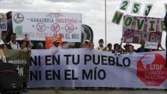 El mensaje 'ni en tu pueblo ni en el mio' ha sido el hilo conductor de esta protesta organizada por Greepeace, Hacendera y el respaldo de la Coordinadora Estatal Stop Ganadería Industrial. Por ello, los organizadores han puesto el foco en conseguir una moratoria no solo para este proyecto sino para todos los que se asemejan al de Noviercas y que están repartidos por toda la geografía nacional.